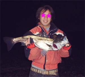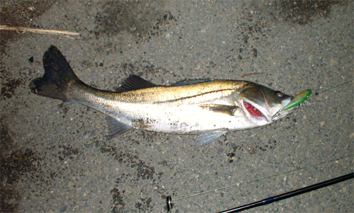 1投目からヒット!! 「やるな110!!」 「さらにデカイ!」 なんどかドラッグを鳴らされ、やっと寄せてきたら 70UPの丸々と太ったヤツ 「よっしゃ!!」 と引き抜くが、ロッドがバットから曲がって抜けない 重い、このサイズでこんなに重い・・・ ロッドを折るつもりで、抜き上げる 「う~~~ん」 「ピッ!」 「あっ!・・・」 110さようなら・・・ シーバスごめんなさい。 PEが切れた・・・3号のPEが・・・ 新しいライン買おう。 今日は素直に帰ります・・・殺生は一匹で十分。